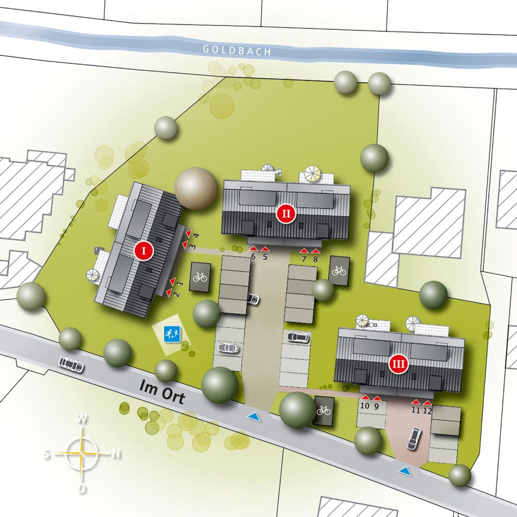 Wohneinheiten: 3 x 4 (82qm – 134qm)